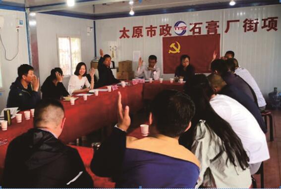 萬柏林片區(qū)臨時(shí)聯(lián)合黨支部的成立是太原市城市建設(shè)管理中心和各參建單位落實(shí)市住建委黨工委提出的“黨建進(jìn)工地、引領(lǐng)促發(fā)展”活動(dòng)的生動(dòng)實(shí)踐,是不斷延伸黨建工作領(lǐng)域、推進(jìn)項(xiàng)目黨建的重要手段。