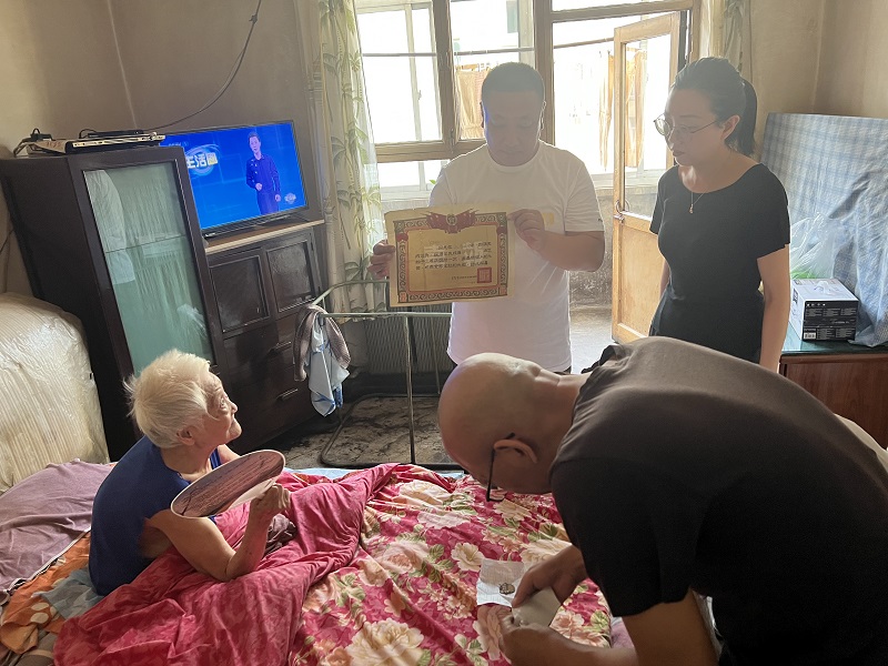 6月28日,安裝公司、物業(yè)公司聯(lián)合旱西關東社區(qū)工作人員組成慰問小組開展“慰問抗美援朝老兵遺孀 真情傳遞溫暖人心”慰問活動?;顒又?,慰問組一行前往抗美援朝老兵史黑則遺孀家中,詳細詢問了老人的生活和身體情況,叮囑老人要保重身體、安享晚年,并送去了牛奶、瓜果等慰問品。同時,慰問組一行還看到了保存多年的獎章及證書,大家紛紛表示要繼承革命先輩的光榮傳統(tǒng),汲取紅色力量,堅定奮進步伐,用實際行動迎接黨的二十大勝利召開。