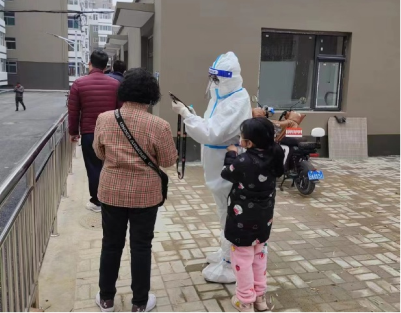 11月18日開始,項目黨總支黨員干部陸續(xù)就地轉(zhuǎn)崗,加入志愿者隊伍,多名黨員干部職工發(fā)揮先鋒模范作用,主動下沉一線抗擊疫情,引導(dǎo)社區(qū)居民排隊有序參檢,勸導(dǎo)群眾戴口罩、保持安全距離,幫助老人和兒童登記信息,配合社區(qū)做好核酸檢測采樣、關(guān)卡值班值守、日常防疫等工作,得到了社區(qū)工作人員的一致贊揚。