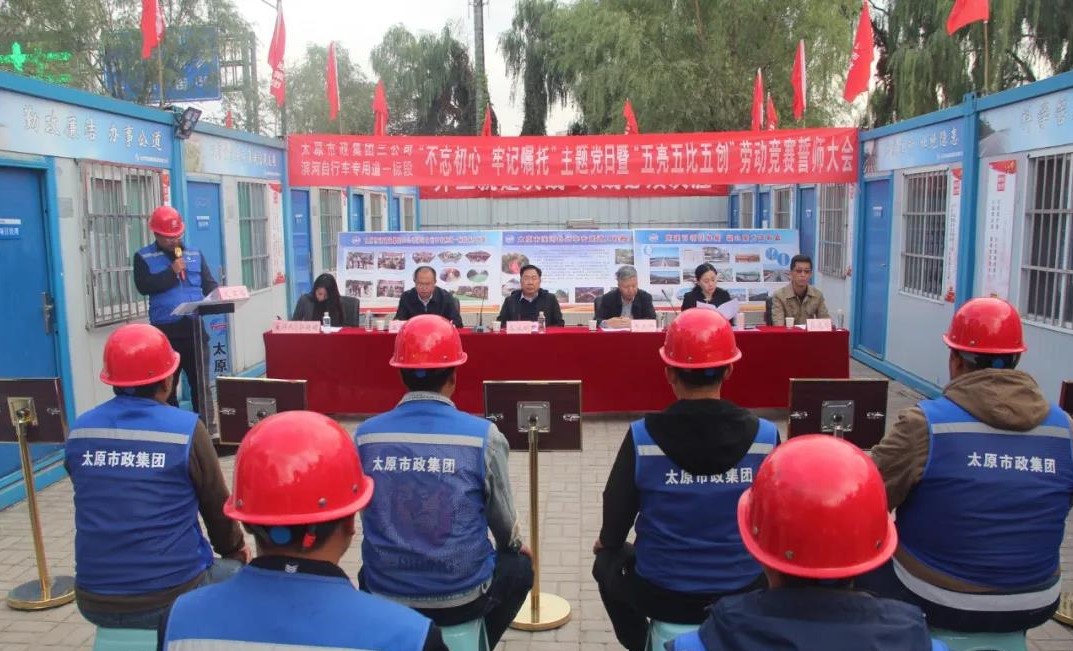此次“不忘初心牢記囑托”主題黨日是按照市委住建工委《關(guān)于建立工(黨)委書記和班子成員黨支部工作聯(lián)系點(diǎn)制度的通知》要求,這次主題黨日活動(dòng)在濱河自行車專用道工程一標(biāo)段開展,旨在以“五亮五比五創(chuàng)”勞動(dòng)競(jìng)賽誓師大會(huì)為契機(jī),擂響向目標(biāo)沖刺的戰(zhàn)鼓,進(jìn)一步引導(dǎo)全體干部職工以決戰(zhàn)決勝的攻堅(jiān)態(tài)度加快推進(jìn)項(xiàng)目建設(shè)。