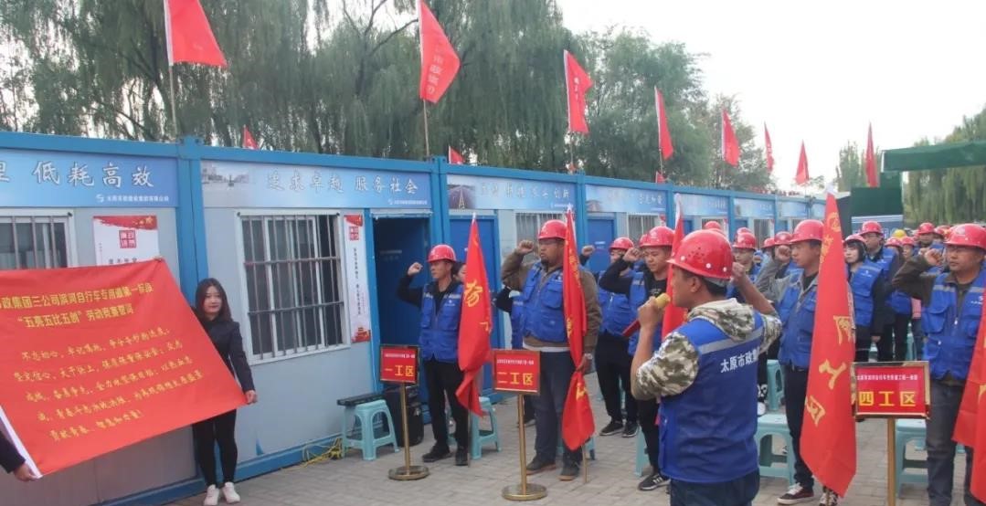 會(huì)上,三公司經(jīng)理栗建軍介紹了濱河自行車專用道工程一標(biāo)段工程概況及施工進(jìn)展情況。該工程道路負(fù)責(zé)人、三公司副經(jīng)理柳文斌宣讀了《太原市政集團(tuán)第三工程公司濱河自行車道一標(biāo)段“五亮五比五創(chuàng)”勞動(dòng)競(jìng)賽實(shí)施方案》。參會(huì)領(lǐng)導(dǎo)為以工區(qū)負(fù)責(zé)人姓名命名的5個(gè)工區(qū)授旗,全體參建人員進(jìn)行集體宣誓。集團(tuán)公司勞動(dòng)模范、該工程橋梁負(fù)責(zé)人、三公司副經(jīng)理郝俊軍分享了他的奮斗故事。第七工區(qū)負(fù)責(zé)人武瑞杰代表各工區(qū)進(jìn)行表態(tài)發(fā)言,表示將自我加壓、勇挑重?fù)?dān),為濱河自行車專用道工程決戰(zhàn)攻堅(jiān)貢獻(xiàn)青春智慧和力量。