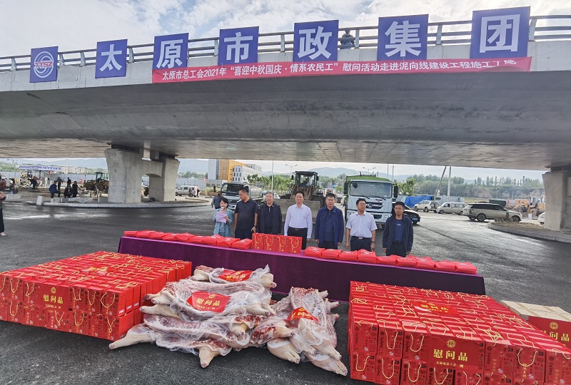 活動中,太原市總工會領(lǐng)導(dǎo)一行先后前往泥向線建設(shè)工程施工五標(biāo)段、南內(nèi)環(huán)街東延建設(shè)工程施工現(xiàn)場,與廣大施工人員進(jìn)行親切交談,了解大家的工作和生活情況,并送去月餅、豬肉、口罩等慰問品。