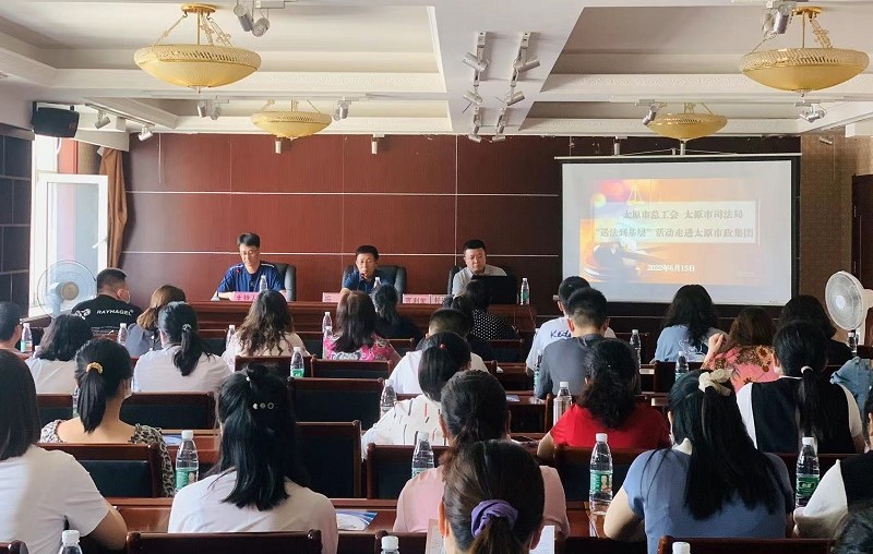 6月15日,由太原市總工會(huì)、太原市司法局聯(lián)合開展的“送法到基層”法律宣傳活動(dòng)走進(jìn)太原市政集團(tuán),集團(tuán)公司黨委委員、監(jiān)事會(huì)主席、工會(huì)主席馮忠,50余名職工聆聽講座。活動(dòng)中,集團(tuán)公司黨委委員、監(jiān)事會(huì)主席、工會(huì)主席馮忠表示,集團(tuán)公司已連續(xù)三年開展“送法到基層”活動(dòng),旨在進(jìn)一步提高職工、農(nóng)民工法律意識(shí),引導(dǎo)大家用正確方式維護(hù)自身合法權(quán)益,促進(jìn)企業(yè)勞動(dòng)關(guān)系和諧穩(wěn)定,并希望通過學(xué)習(xí)來培養(yǎng)大家樹立遇事找法、解決問題用法、化解矛盾靠法的法治觀念。山西元升律師事務(wù)所的賈利軍律師通過對比《民法典》新舊法規(guī)條例,深入淺出地講解了如何用《民法典》維護(hù)個(gè)人的合法權(quán)益,并耐心解答了現(xiàn)場職工提出的法律咨詢。講座結(jié)束后,集團(tuán)公司工會(huì)為現(xiàn)場職工發(fā)放了法律宣傳相關(guān)資料。通過開展此次“送法到基層”活動(dòng),有效提升了職工的法律意識(shí),進(jìn)一步引導(dǎo)職工以合法方式維護(hù)自身權(quán)益,促進(jìn)了企業(yè)和諧穩(wěn)定發(fā)展。