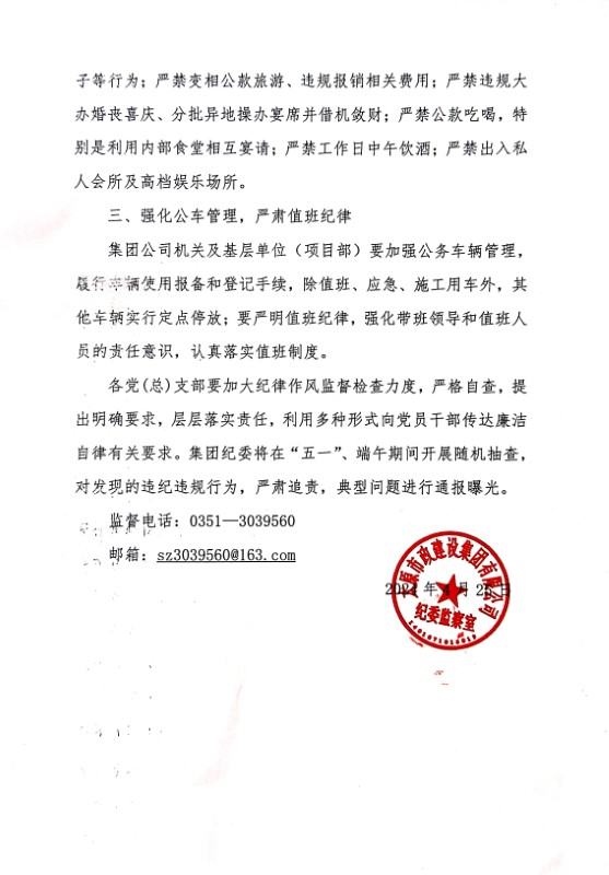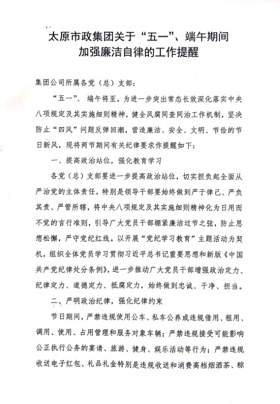 太原市政集團關(guān)于“五一”、端午期間加強廉潔自律的工作提醒