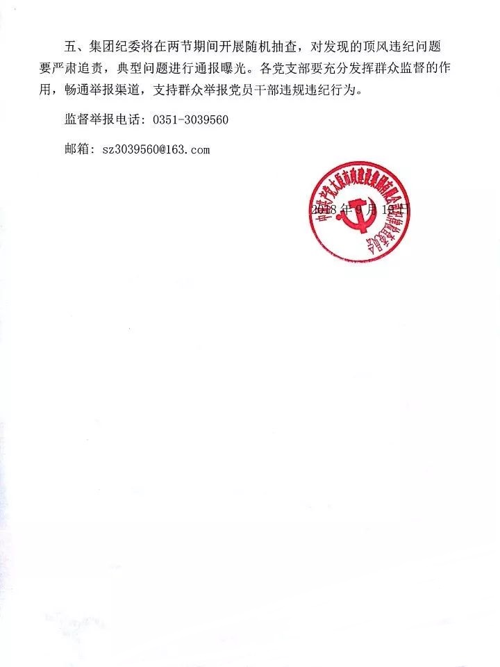 太原市政建設(shè)集團(tuán)有限公司關(guān)于嚴(yán)明“中秋、國(guó)慶”期間有關(guān)紀(jì)律要求的通知