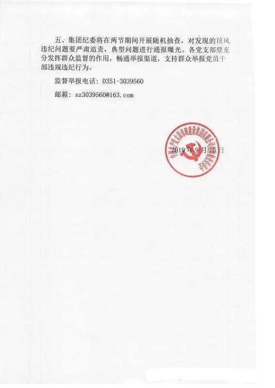 太原市政建設(shè)集團(tuán)有限公司關(guān)于嚴(yán)明“中秋、國慶”期間有關(guān)紀(jì)律要求的通知