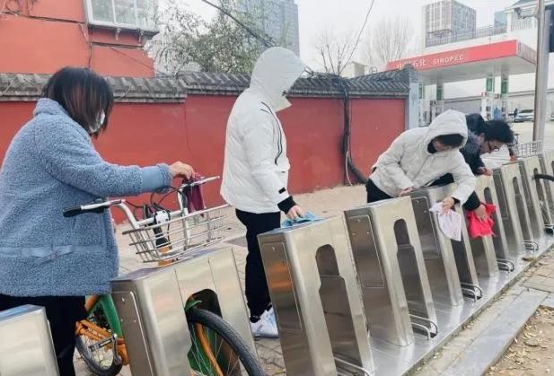 活動(dòng)中,志愿者們對(duì)太原市第二十中學(xué)校門前的公交自行車停放點(diǎn)進(jìn)行了擦拭,并將車輛擺放整齊,以實(shí)際行動(dòng)為美化城市貢獻(xiàn)力量。