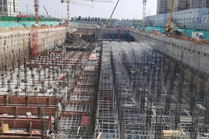 施工中,項目部從制度管控和具體實操入手,早部署、早落實,始終做到“心中有全局,手中有物資”。該工程的施工重點是深基坑大體積施工,如遇強降雨天氣,基坑內(nèi)積水量大,無法自行排出。項目部根據(jù)深基坑施工現(xiàn)狀,為各施工隊伍配備排水泵,確保在24小時內(nèi)將積水排出基坑外, 并加快深基坑底板混凝土澆筑,盡早硬化底板地面;基坑兩側用沙袋設置阻水帶,提前做好邊坡防護,防止雨水對深基坑造成浸泡侵蝕。同時,項目部安排施工人員加大監(jiān)測頻率,如果發(fā)現(xiàn)數(shù)據(jù)異常,及時上報并組織專家論證,確保深基坑施工“萬無一失”。