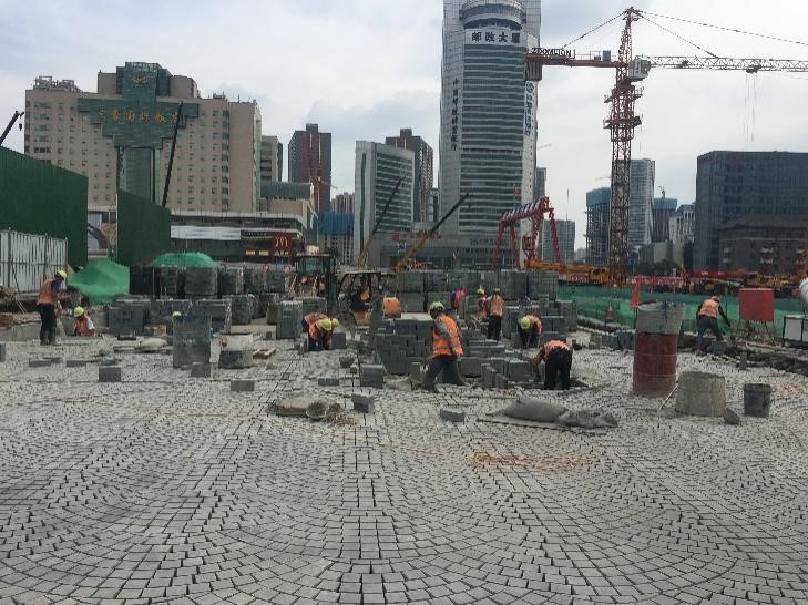 項(xiàng)目部打造“工區(qū)+工隊(duì)”雙項(xiàng)管理模式,加強(qiáng)施工人員管理,嚴(yán)格要求責(zé)任到人、監(jiān)測到位,保證石材鋪裝質(zhì)量,為工程建設(shè)打下堅(jiān)實(shí)基礎(chǔ)。