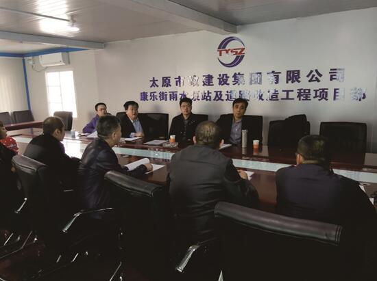 39日,市住建委黨工委書記、主任姜波視察由三公司承建的康樂街雨水泵站及道路改造工程。太原市政建設集團有限公司黨委書記、董事長張平國一行三人陪同視察。