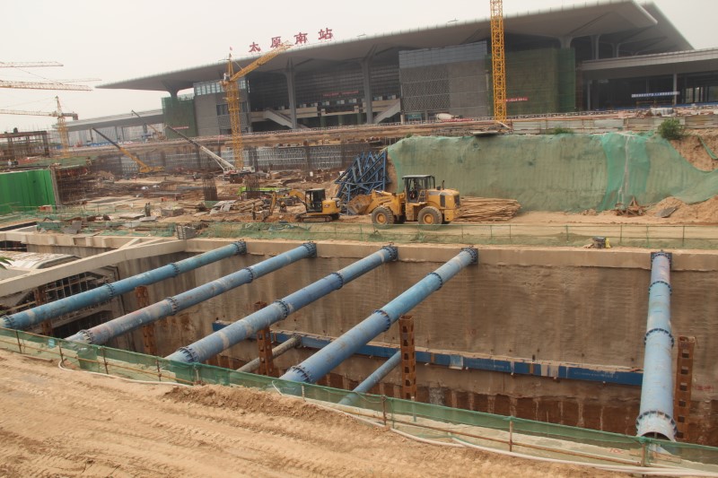 太原南站東廣場配套路網(wǎng)工程位于太原南站東側(cè),西起太原火車南站東出口,東至太行路,南至車站南街以南200米,北至南中環(huán)街,共包括10條市政道路、五條高架匝道引橋及所屬沿線的照明、管線等配套設(shè)施,同時外加2條貴賓小路。其中,北營北路包含地下通道及地面道路兩部分,地下通道全長1124米。該工程作為省級重點(diǎn)工程項(xiàng)目,受到了社會各界的重點(diǎn)關(guān)注和上級領(lǐng)導(dǎo)的高度重視,于2017年4月開工建設(shè),由八公司負(fù)責(zé)承建。施工中的重難點(diǎn)在于北營北路地下通道最深處達(dá)21米的深基坑施工,項(xiàng)目部采用混凝土灌注樁加內(nèi)支撐的模式,第一 道內(nèi)支撐為混凝土支撐,其余為多道鋼支撐,保證基坑壁穩(wěn)定性。地下通道施工時,該通道頂板為折線拱形頂板,澆筑難度較大,項(xiàng)目部組織技術(shù)人員根據(jù)工程特點(diǎn),研究出一種全新的支模方法,利用插模板的方式進(jìn)行分段澆筑,在確保工程質(zhì)量的同時,保證施工進(jìn)度。同時,由于該工程情況復(fù)雜,項(xiàng)目部技術(shù)人員從“細(xì)節(jié)”入手,及時發(fā)現(xiàn)問題,并反復(fù)溝通協(xié)調(diào),提出了合理化建議,確保了工程有序推進(jìn)。在2019年的施工過程中,集團(tuán)公司組織五家施工單位,60多臺施工機(jī)械、130多名施工人員,經(jīng)過21天的奮戰(zhàn),協(xié)作完成10條道路從路基、水穩(wěn)到瀝青攤鋪的施工任務(wù),其中瀝青攤鋪面積達(dá)到7萬平方米。全體參建人員在太原城市建設(shè)的“戰(zhàn)場”上,傾情演繹著市政鐵軍的“速度與激情”,太原南站以嶄新的面貌迎接“二青會”的八方來客。