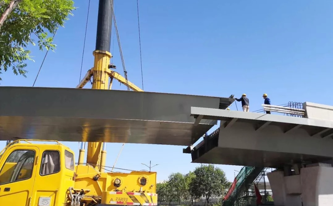 該工程分為兩個(gè)匝道,均為單向雙車道匝道,匝道寬9.5米,由四公司負(fù)責(zé)承建。截止目前,橋梁工程主體、南引道底基層水穩(wěn)、北引道底基層水穩(wěn)已全部完成;道路工程擋墻累計(jì)完成319米,占總量的90%;防撞護(hù)欄累計(jì)完成1394米,占總量的63%。該工程建成后將完善濱河西路路網(wǎng)體系,有效提升道路通行能力,改善市民出行條件。