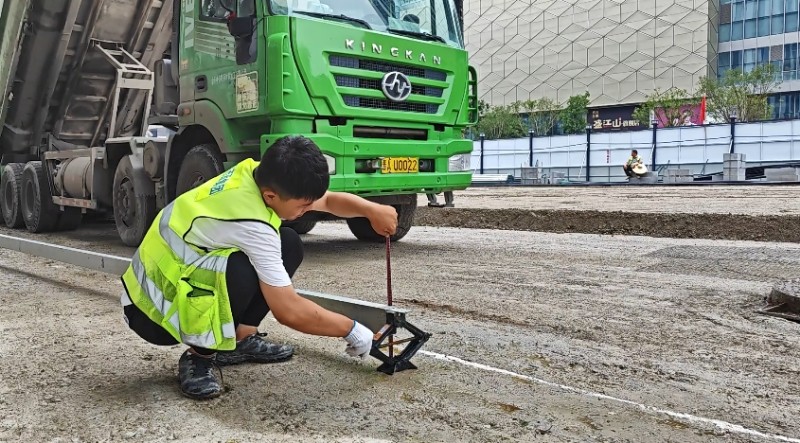 “以工匠精神,打造城市街道的靚麗名片”。項(xiàng)目部對所有進(jìn)場花崗巖板材進(jìn)行逐塊檢驗(yàn),確保板材表面平整度、缺陷指標(biāo)符合設(shè)計要求,讓石材自帶“高顏值”。施工中,施工人員嚴(yán)格控制混凝土基層表面平整度偏差,確保壓實(shí)度達(dá)到95%以上;鋪貼階段采用“試鋪—校正—精鋪”的工藝流程,嚴(yán)格按配比配制干硬性水泥砂漿;鋪貼時使用橡皮錘從板材中心向四周均勻輕擊,確保砂漿飽滿密實(shí),相鄰板材高差控制在正負(fù)1毫米以內(nèi),接縫寬度保持均勻一致。鋪裝完成后利用專用填縫劑進(jìn)行嵌縫處理,并實(shí)施保濕養(yǎng)護(hù),確保鋪裝層達(dá)到平整美觀、堅固耐用的質(zhì)量要求。
