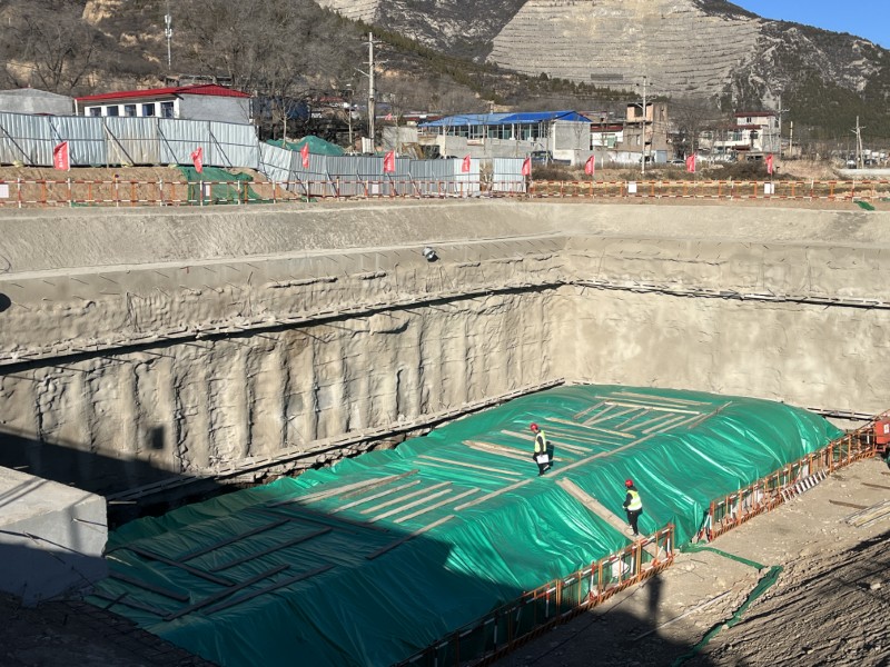 項目部組建專項指揮工作組,進行全方位、全流程精細化管理,重點防止出現(xiàn)混凝土水化熱過高、內外溫差較大,導致結構產生裂縫的情況。前期重點優(yōu)化混凝土設計配合比,從原材優(yōu)選入手,減少混凝土水化熱影響;中期采用分層分段澆注方式,保證混凝土澆筑連續(xù)性,嚴格把關鋼筋及模板拉桿連接、冷卻水管位置等細節(jié)質量,確保澆筑質量達標;同時在混凝土內部及表面布置測溫點,及時觀察記錄溫度變化,為澆筑施工提供堅實保障;后期進行毛毯覆蓋灑水養(yǎng)生、內設循環(huán)冷卻管路,嚴格控制水的流量流速,流量范圍