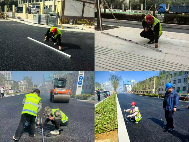理論與實踐緊密結(jié)合,方能彰顯力量。各在建項目部積極響應(yīng),組建由項目經(jīng)理掛帥,工長、質(zhì)檢員協(xié)同作戰(zhàn)的質(zhì)量檢查小組。他們攜帶測溫儀、塞尺、鋼直尺等專業(yè)工具,深入施工現(xiàn)場,對道路面層與工程材料展開“地毯式”排查,從路面平整度到材料規(guī)格,不放過任何細微之處,將質(zhì)量管控觸角延伸至施工現(xiàn)場的每一角落,用實際行動守護工程質(zhì)量的“生命線”。