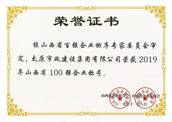 11月8日,山西省企業(yè)聯(lián)合會、山西省企業(yè)家協(xié)會攜手山西財經(jīng)大學(xué)向社會發(fā)布“山西企業(yè)100強排行榜”,同時發(fā)布《山西企業(yè)100強(年度)發(fā)展報告》。太原市政建設(shè)集團有限公司榮獲“2019年山西省100強企業(yè)”稱號,排名第39位。