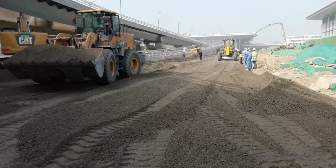 太原市政建設(shè)集團(tuán)有限公司太原南站東廣場(chǎng)配套路網(wǎng)工程龍堡路、規(guī)劃一路、F1路、F2路等10條道路水穩(wěn)鋪設(shè)已全部完成