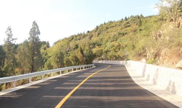 由于施工路段全部為山路,材料的運(yùn)輸、攤鋪困難。在水穩(wěn)攤鋪時(shí),材料和機(jī)械無(wú)法一次性到位,需要二次上料,二次倒料,運(yùn)輸車(chē)先將瀝青混合料倒在指定地點(diǎn),再用小型鏟車(chē)將混合料裝到攤鋪機(jī)上。攤鋪過(guò)程中,山路坡度較大,靜態(tài)壓路機(jī)無(wú)法進(jìn)行作業(yè),只能先采用振動(dòng)壓路機(jī)碾壓,再用雙鋼輪壓路機(jī)進(jìn)行二次碾壓,保證水穩(wěn)面層壓實(shí)度符合規(guī)范要求。針對(duì)坡陡、彎急的山路特點(diǎn),項(xiàng)目部在施工建設(shè)中不僅對(duì)轉(zhuǎn)彎處路面進(jìn)行了加寬,還對(duì)路面外側(cè)進(jìn)行加高,使路面向山體一側(cè)傾斜,提高了行車(chē)安全和舒適度。此外,由于西山山體土質(zhì)疏松,項(xiàng)目部還在道路臨溝地段,建設(shè)下嵌式路肩擋土墻,擋土墻下嵌在地下60厘米到70厘米,有效防止路基邊坡平移、側(cè)滑。