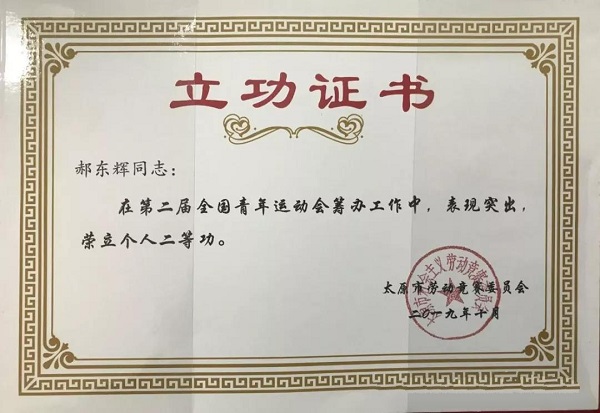 太原市政建設(shè)集團有限公司喜獲兩項第二屆全國青年運動會籌辦工作個人榮譽稱號